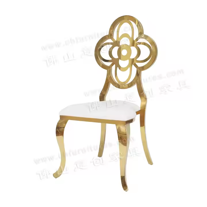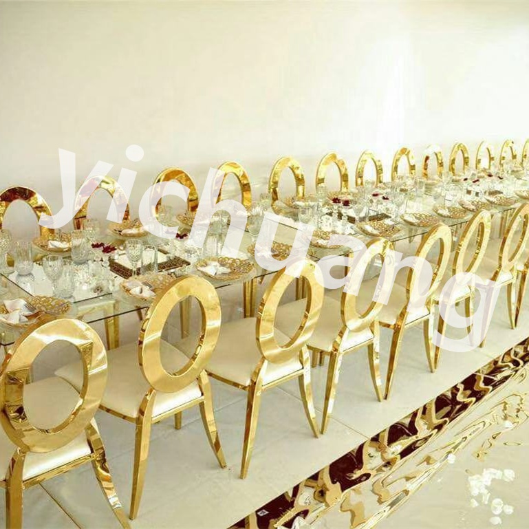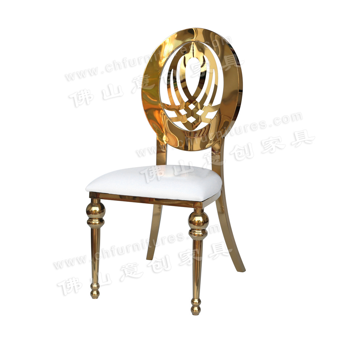 เช่าแฟนซีทองสแตนเลสเก้าอี้จัดงานแต่งงานสำหรับร้านอาหารและจัดเลี้ยงที่มีรอบกลับ