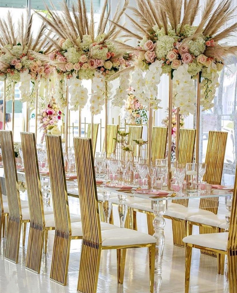 ขายส่งทองสแตนเลสเก้าอี้จัดงานแต่งงานที่หรูหราสำหรับการรับเหตุการณ์