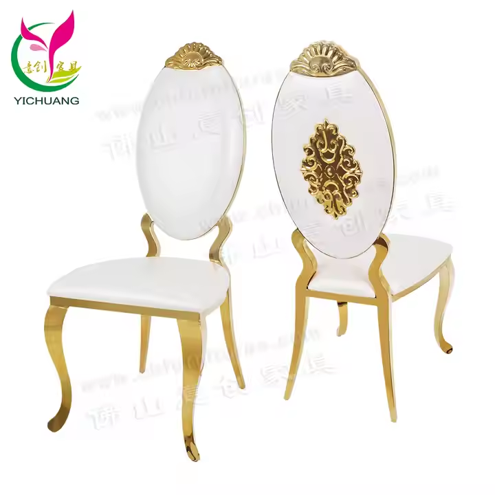 HYC-SS52โกลเด้นสแตนเลสรูปไข่กลับสีขาวเบาะเก้าอี้จัดเลี้ยงงานแต่งงาน